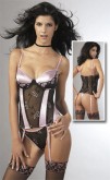 Souprava - korzetu s podvazky a stringových kalhotek v černofialové kombinaci